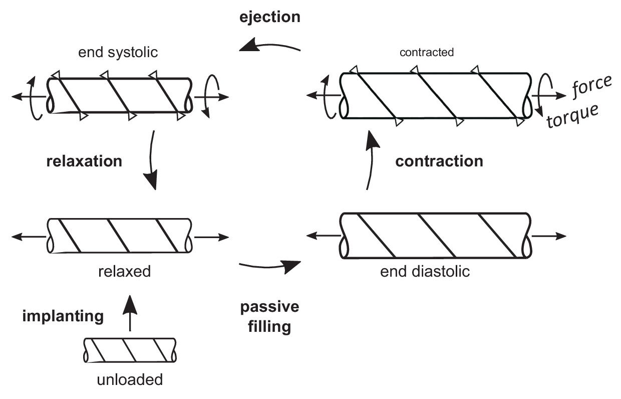 The active constitutive formulation — originally developed by Ohayon, Ambrosi, and Martiel — plays a central role in capturing stretch-dependent activation and its coupling to structural architecture. Its implementation within this tubular framework enabled us to explore how designed geometry and material anisotropy translate into functional pulsatility under cyclic actuation.