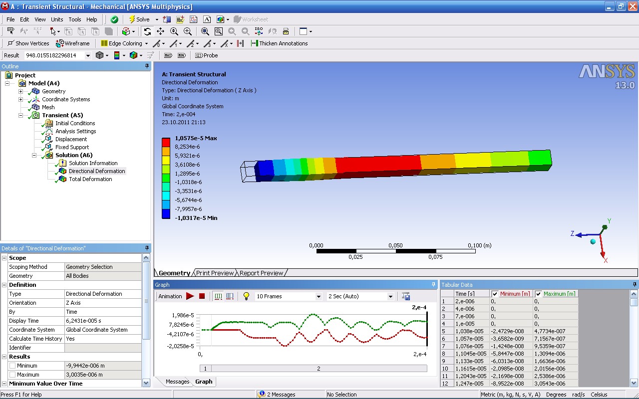 a parallelepiped with harmonic displacement being applied to one face, and fixed