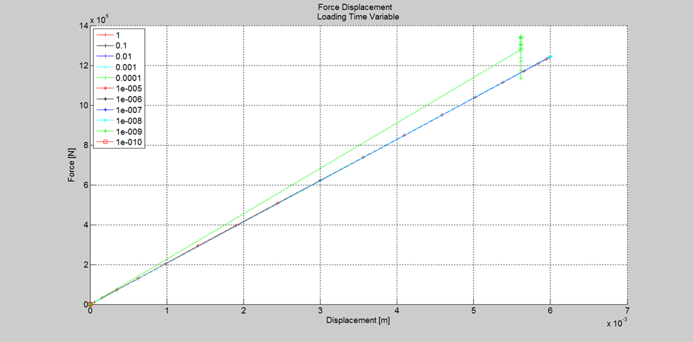 My results: It is hard to see in the two graphs but essentially all graphs look like the light green one. In that the data points are not evenly spread out throughout the x-axis. The simulation goes from 0,0 to the second point and then all other points are in a vertical line. It seems like the graphs are converging, but the vertical lines seem odd. Even if I apply this to my notched beam simulation with 7100 variables, it doesn't speed up at all.
