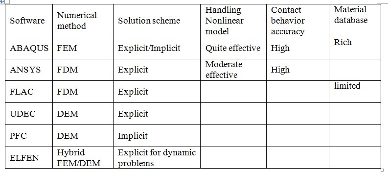 my reserach field is to study the boundary effects in a lab test on the obtained material properties, I have decided to choose abaqus as my numerical tool, but in order to explain the merits of abaqus (robust at solving complex and nonlinear boundary conditions explicitly) over the others, i need make a comparison among other popular modeling softewars, which I am not farmiliar with, i made a table, some contents are missing or questionable, could you help me firgue it out?