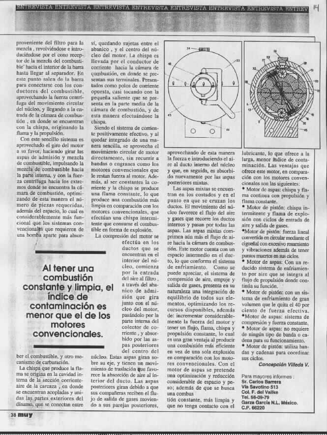 -The Mechanical Gear Power Thrust Point Wide out the Rotor circumference were have much more lever [HIGH Torque] POWER THRUST. -No blade erosion by sand & very low heat target signature profile. -3 points of power thrust; 1-flow way, 2-gear, 3-turbine. *Patent; Dic. 1991 IMPI Mexico #197187 All Rights Reserved. Carlos Barrera.