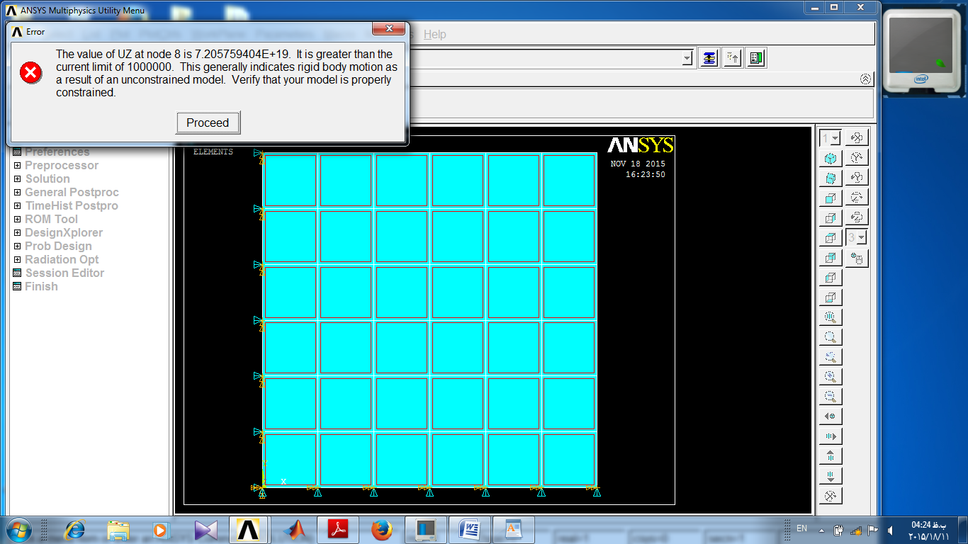 I want to model a plate with fix supports in APDL ANSYS but I receive an error that send it for you. dimensions of the plate are (0.2*0.2)m2 and carries pressure load 50(KN/m2).