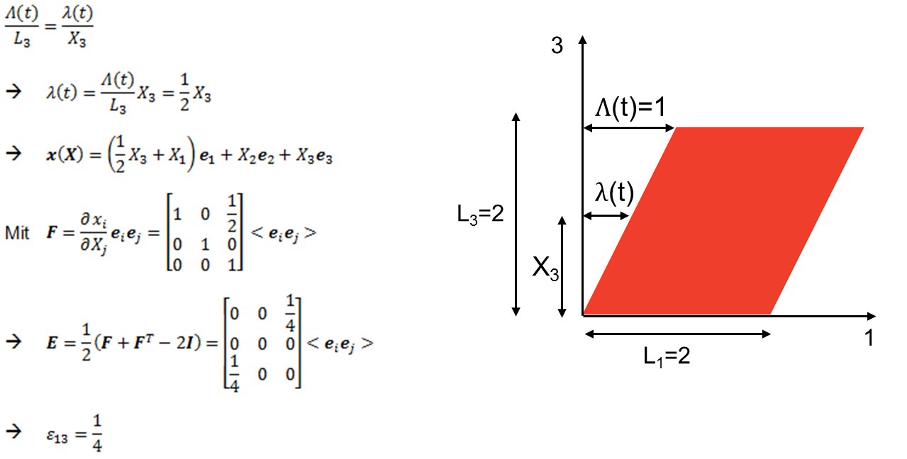 I have some troubles in calculating the strain in ABAQUS. I have the following Model with one element (see picture) and a linear elastic isotropic Material (Steel), which is sheared in the x-direction. The analytical result of the strain tensor gives me in xz-direction 0.25 (see picture). The result in ABAQUS is 0.5. I ran the same simulation in CalculiX CrunchiX and got the expected strain of 0.25 in the xz-direction