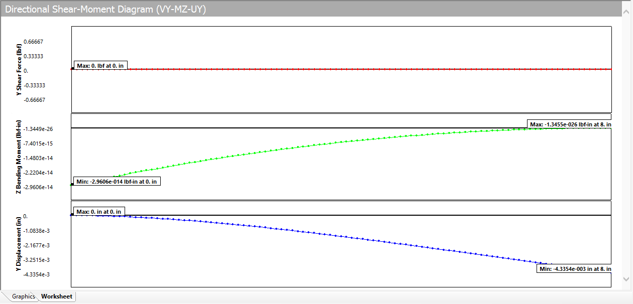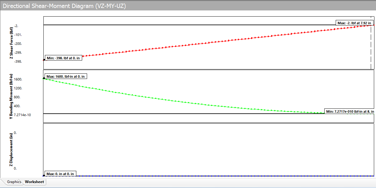beam-VY-MZ-UY.jpg: deformation UY is correct but VY, MZ shown as zero? why? Should be VY=-400 and MZ from 0.0 at the free end to 1600 at x=0