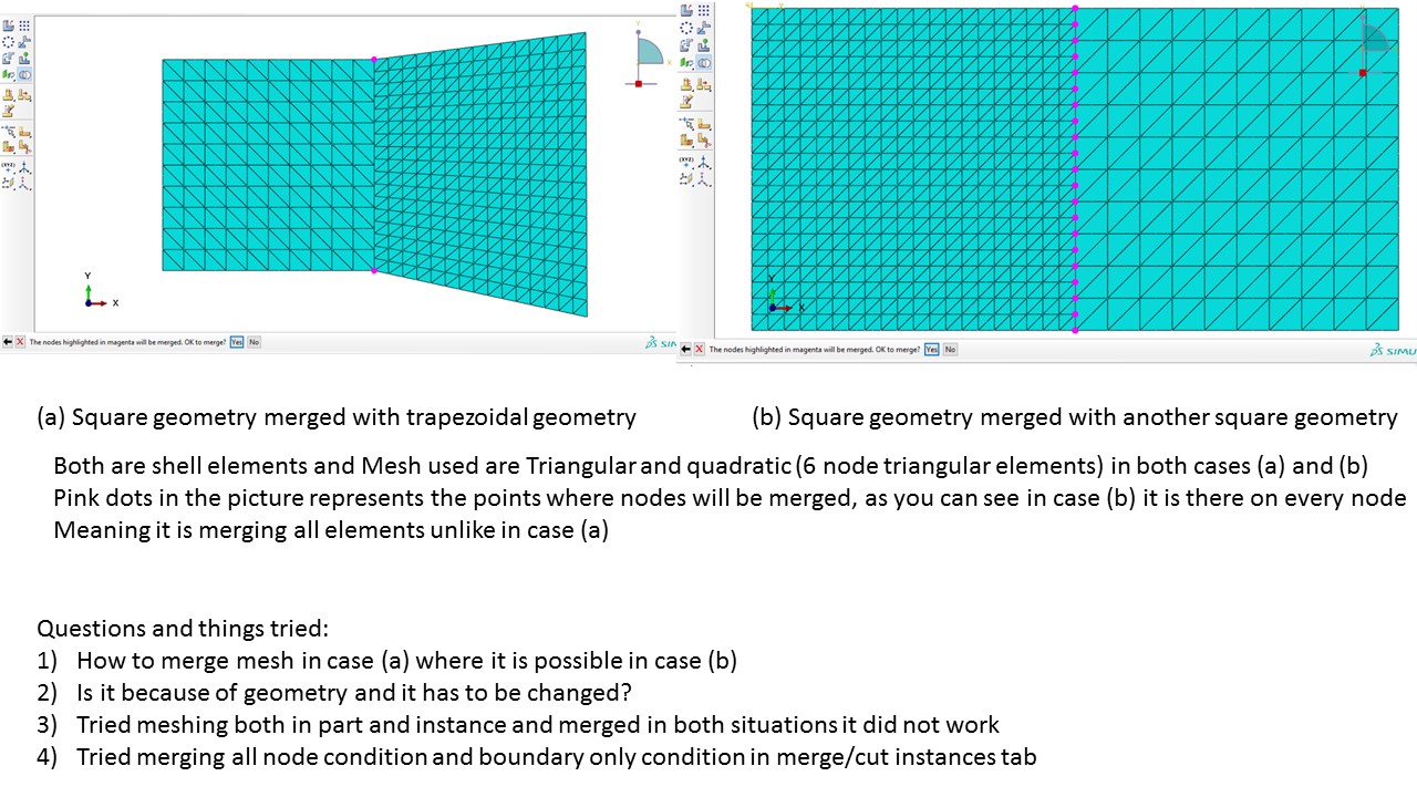 Hi I tried to mesh these two plates with two cases having different geometries. I am trying to achieve something similar in complex geometry in abaqus. But I think the problem is with shapes or if it is something else, please help me with this. I tried in solid elements too it did not work either. I have attached image where you can see two cases