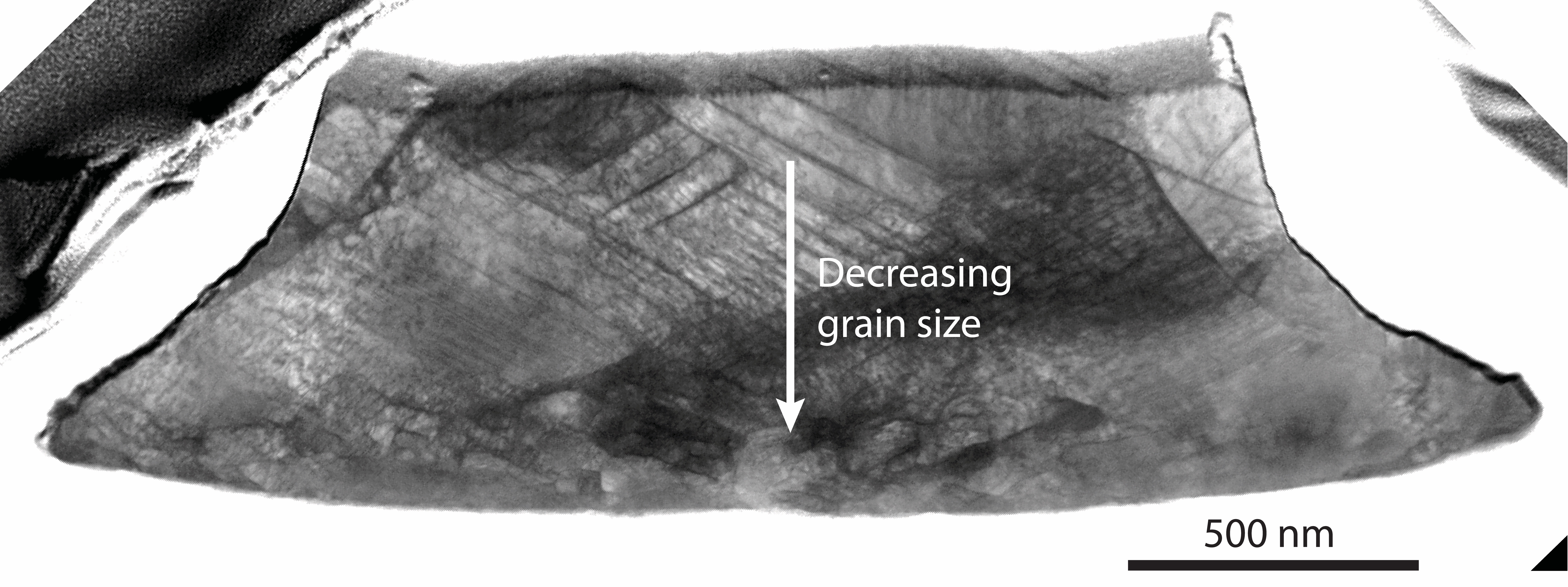 In an article published today in Science, we have demonstrated the creation of an extreme gradient-nano-grained (GNG) structure in single-crystal microcubes through high-velocity impact. We use the defect-free single-crystal silver microcubes, synthesized using a seed-growth process, as the model system, and fire them at supersonic velocities onto a rigid target to create the GNG structure. We also study the created GNG structure over the course of several weeks and reveal that this nanostructure evolves through recrystallization at room temperature without any external thermal annealing. We believe that the GNG-structured metals with intermediate states of recrystallization holds promise for creating ultra-strong and tough metals, which have the potential to alleviate the brittle failure commonly found in nanocrystalline metals.