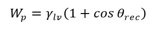 This equation links the work of adhesion Wa and equilibrium contact angle θe. It should be noted that Wa is equilibrium work of adhesion rather than the actual work required to separate a liquid from a surface, since the energy needed to separate surfaces is greater than that gained by bringing them together [18,19]. According to Gao and McCarthy’s theory [27,28], the practical work of adhesion Wp could be determined by the receding contact angle θrec using:
