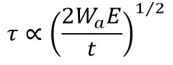 The large difference in elastic moduli for ice and soft surfaces results in a mismatch in strain under stress when a force acts to remove ice. The mismatch in strain will make the ice separate from soft surfaces, thus lowering the ice adhesion. Wang et al [22] reported that ice adhesion on soft materials not only relate to the work of adhesion, but also the coating thickness and probe speed (Figure 5). The relationship between ice adhesion τ and thickness t can be written as: