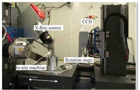 Fig. 1 (a) Global view of the in situ compression test combined with XR-μCT at Laboratoire Navier; (b) Sample of lightweight concrete.
