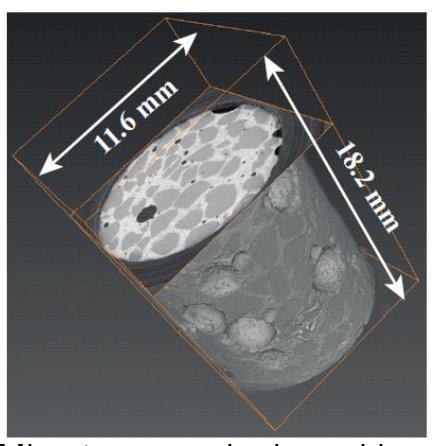Fig. 3:(a) location of the sub-volume in the sample; (b)XR-μCT images of the sub-volume.