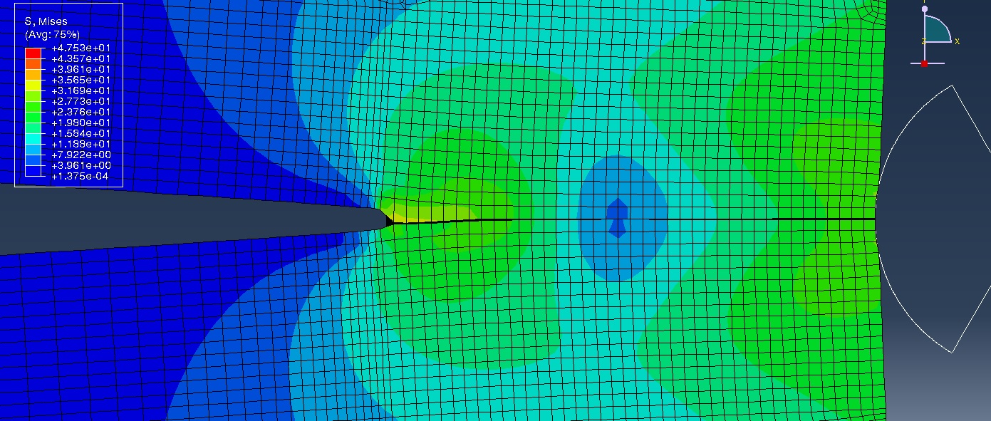 I am modelling a 3 point bend specimen with Cohesive elements tied to the upper and lower halves of the specimen in 2d.
