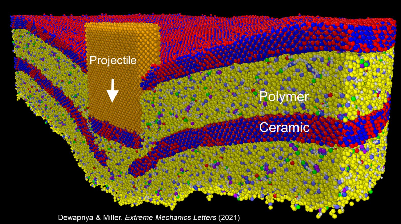 [3] Dewapriya, M. A. N. & Miller, R. E. Molecular dynamics study of the penetration resistance of multilayer polymer/ceramic nanocomposites under supersonic projectile impactsExtreme Mech. Lett. 44, 101238 (2021).