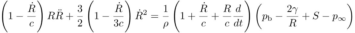 where R(t) is the bubble radius, c is the sound speed of the surroundings, ρ∞ is the density of the surroundings, γ is the surface tension, and S is the stress integral. Other models could be used to account for liquid compressibility [35,36]. As discussed in [37], the Keller-Miksis equation is an appropriate description.