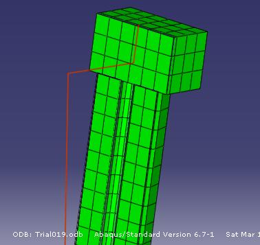 The problem is when I apply lateral force what happens is that the bar just don't follow the pipe in its motion. The last mesh element in the embedded part isn't attached anymore to the upper cube.
