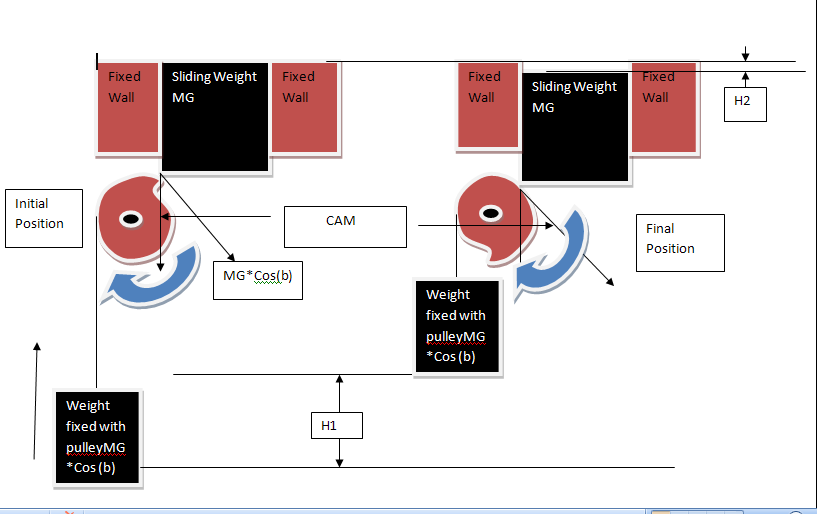 weight (MG) applied on Cam. With the help of rope weight(MG*Cos(b)) is