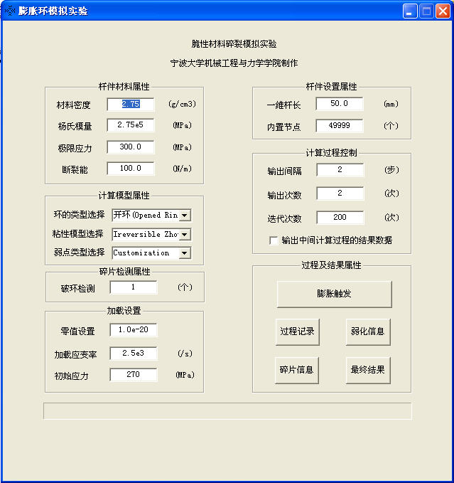 This is a free tool to simulate the fragment of brittle materials. You can use it to calculate the fragmentation of some differernt materials with different weakened styles. Also you can use different model to analyze your fragment process. The tool and its introduction are showing the attachment.