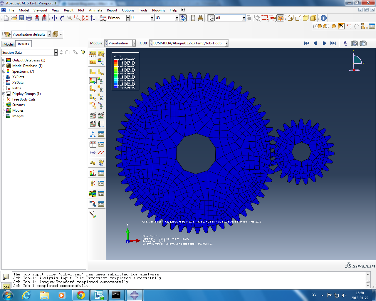 I am doing spur gear contact simulation on abaqus when I do this driver gear rotate but driven gear not rotate as I observed in results.