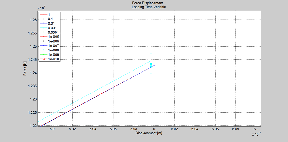 My results: It is hard to see in the two graphs but essentially all graphs look like the light green one. In that the data points are not evenly spread out throughout the x-axis. The simulation goes from 0,0 to the second point and then all other points are in a vertical line. It seems like the graphs are converging, but the vertical lines seem odd. Even if I apply this to my notched beam simulation with 7100 variables, it doesn't speed up at all.