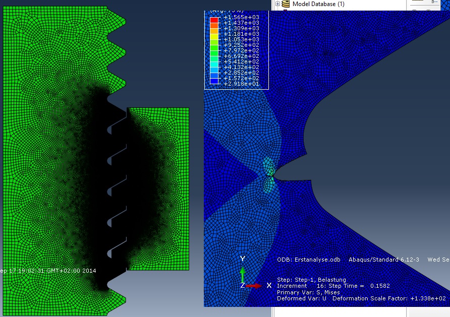 2.) The XFEM crack propagation itself also works, when there is no contact (the screw thread is hold at the bottom). But it just works with problems (after a few little propagation steps, the analysis stops with the error:"ERROR: TOO MANY ATTEMPTS MADE FOR THIS INCREMENT"). The problem is that the tolerance f is exceeded. I think, this problem can be solved by increasing the number of possible attempts. But I do not know, where to change it.