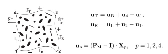 I imposed periodic boundary conditions on the RVE using corner nodes as master nodes and define the displacement of the other nodes on the boundary related to these master nodes displacements using constraint equations as figure 2.