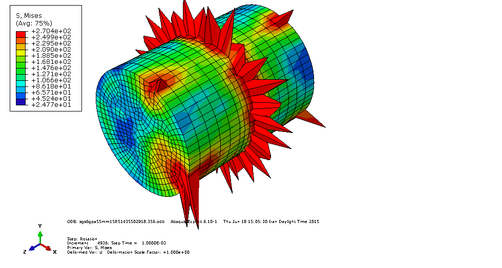 I am doing abaqus run for a copper specimen under hydrostatic pressure. The magnetude of pressure is in order of several Giga Pascals. In my material definition, I have defined stress-strain flow up to strain of 0.4. But as you can see in attached photo, some elements show very large deformation (considerably larger than 0.4). Knowing that I have not defined stress strain behaviour for srain greater than 0.4, how this can be occure? Unfortunately, niether adaptive meshing nor element deletation were not eliminate this issue!!