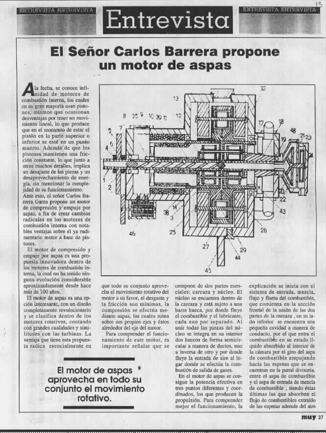 -The Mechanical Gear Power Thrust Point Wide out the Rotor circumference were have much more lever [HIGH Torque] POWER THRUST. -No blade erosion by sand & very low heat target signature profile. -3 points of power thrust; 1-flow way, 2-gear, 3-turbine. *Patent; Dic. 1991 IMPI Mexico #197187 All Rights Reserved. Carlos Barrera.