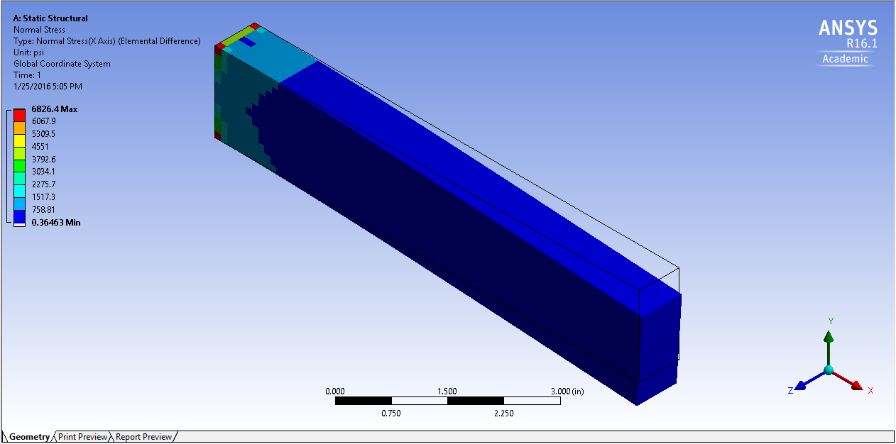 I model with ANSYS Workbench, uniform mesh Ex-3-6-3D-Normal-Stress.PNG attached.