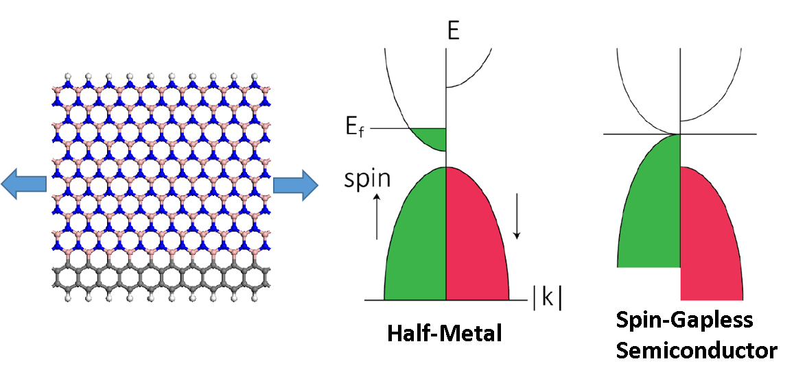 Shuze Zhu* and Teng Li*, Strain-induced programmable half-metal and spin-gapless semiconductor in an edge-doped boron nitride nanoribbon, Physical Review B, 93, 115401 (2016)