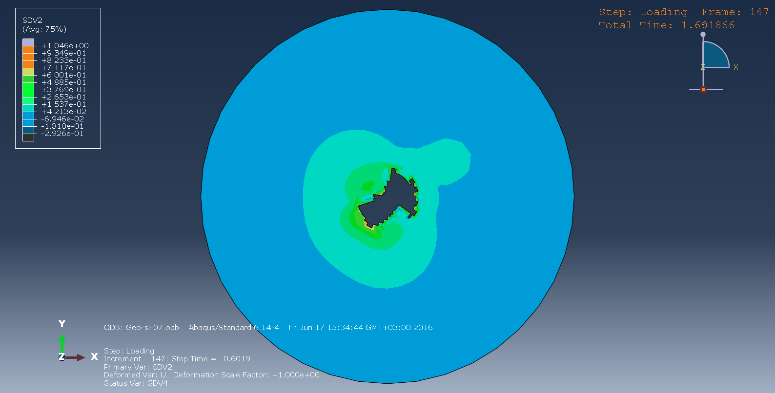 How can I recalculate the normal pressure inside the circular hole of the soil model using the DLOAD subroutine if the neighbouring FEs were failed. Failure criteria is given by Mohr Coulomb criterion (https://en.wikipedia.org/wiki/Mohr%E2%80%93Coulomb_theory).