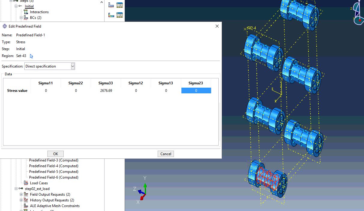 initial - BC + initial state of stress in bolt shank (this step works - see Fig. 3 & 4)
