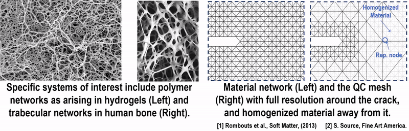 Materials with network-like microstructure, including polymers, are the backbone for many natural and human-made materials such as gels, biological tissues, metamaterials, and rubbers. Fracture processes in these networked materials are intrinsically multiscale, and it is computationally prohibitive to adopt a fully discrete approach for large scale systems. To overcome such a challenge, we introduce an adaptive numerical algorithm for modeling fracture in this class of materials, with a primary application to polymer networks, using an extended version of the Quasi-Continuum method that accounts for both material and geometric nonlinearities. In regions of high interest, for example near crack tips, explicit representation of the local topology is retained where each polymer chain is idealized using the worm like chain model. Away from these imperfections, the degrees of freedom are limited to a fraction of the network nodes and the network structure is computationally homogenized, using the micro-macro energy consistency condition, to yield an anisotropic material tensor consistent with the underlying network structure. A nonlinear finite element framework is used to solve the system where dynamic adaptivity allows transition between the continuum and discrete scales. The method enables accurate modelling of crack propagation without a priori constraint on the fracture energy while maintaining the influence of large-scale elastic loading in the bulk. We demonstrate the accuracy and efficiency of the method by applying it to study the fracture in different examples of network structures. We further use the method to investigate the effects of network topology and disorder on its fracture characteristics. We discuss the implications of our method for multiscale analysis of fracture in networked material as they arise in different applications in biology and engineering.