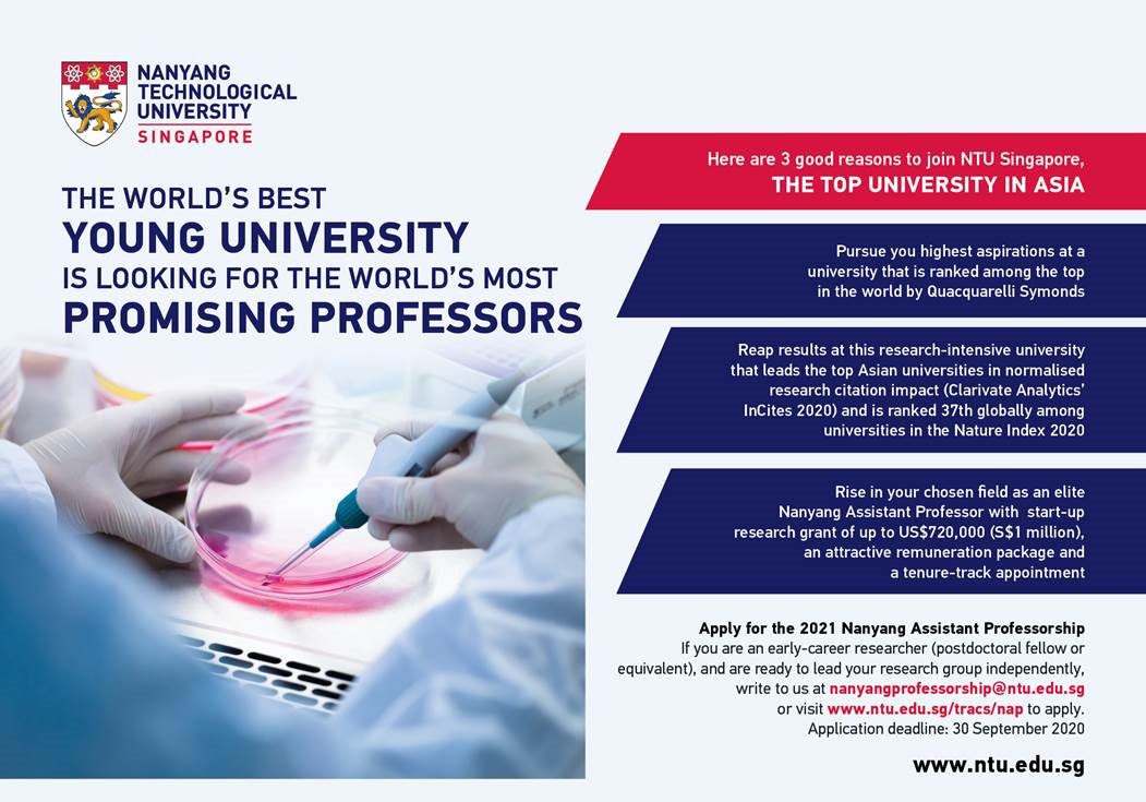 Applications must be submitted online (www.ntu.edu.sg/tracs/nap) before Wednesday, 30 September 2020, 11:59 P.M. (UTC / GMT +8:00).