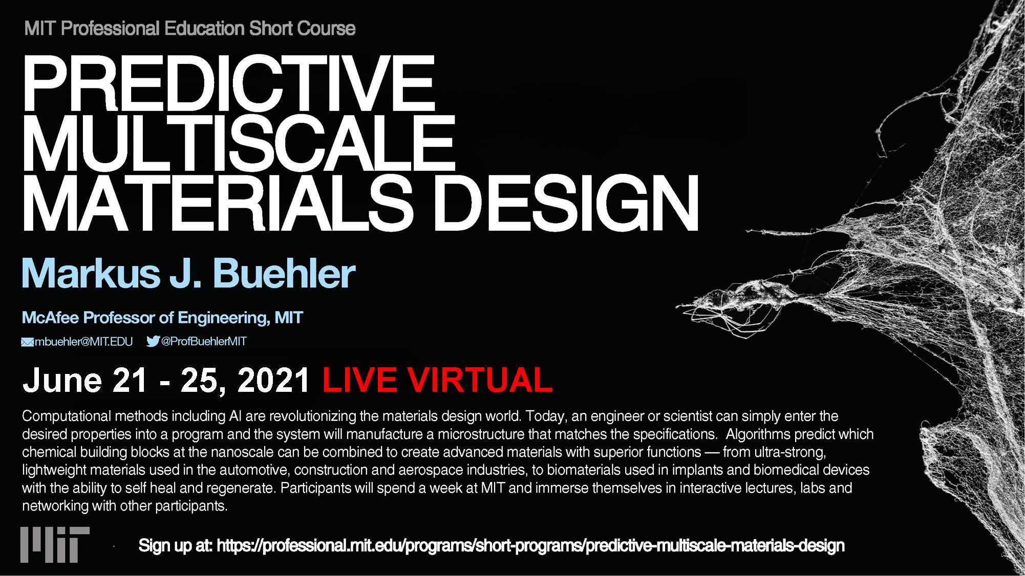 TL;DR, MIT Short Course, Live Virtual June 21-25, 2021; a hands-on bootcamp on multiscale mechanics, ML/AI, additive methods, biomaterials and bio-inspired materials and design. Registration closing soon - sign up now!