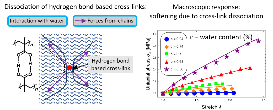 In our new work we derive a model that captures the dissociation of cross-links and its consequences. The model is validated through a series of experiments on poly(methacrylic acid) hydrogel networks dominated by hydrogen bond based cross-links.