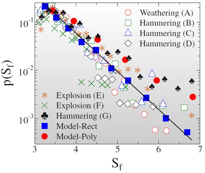 Domokos, G., Jerolmack, D.J., Kun, F., Török, J., 2020. Plato’s cube and the natural geometry of fragmentation. Proceedings of the National Academy of Sciences 117, 18178-18185.